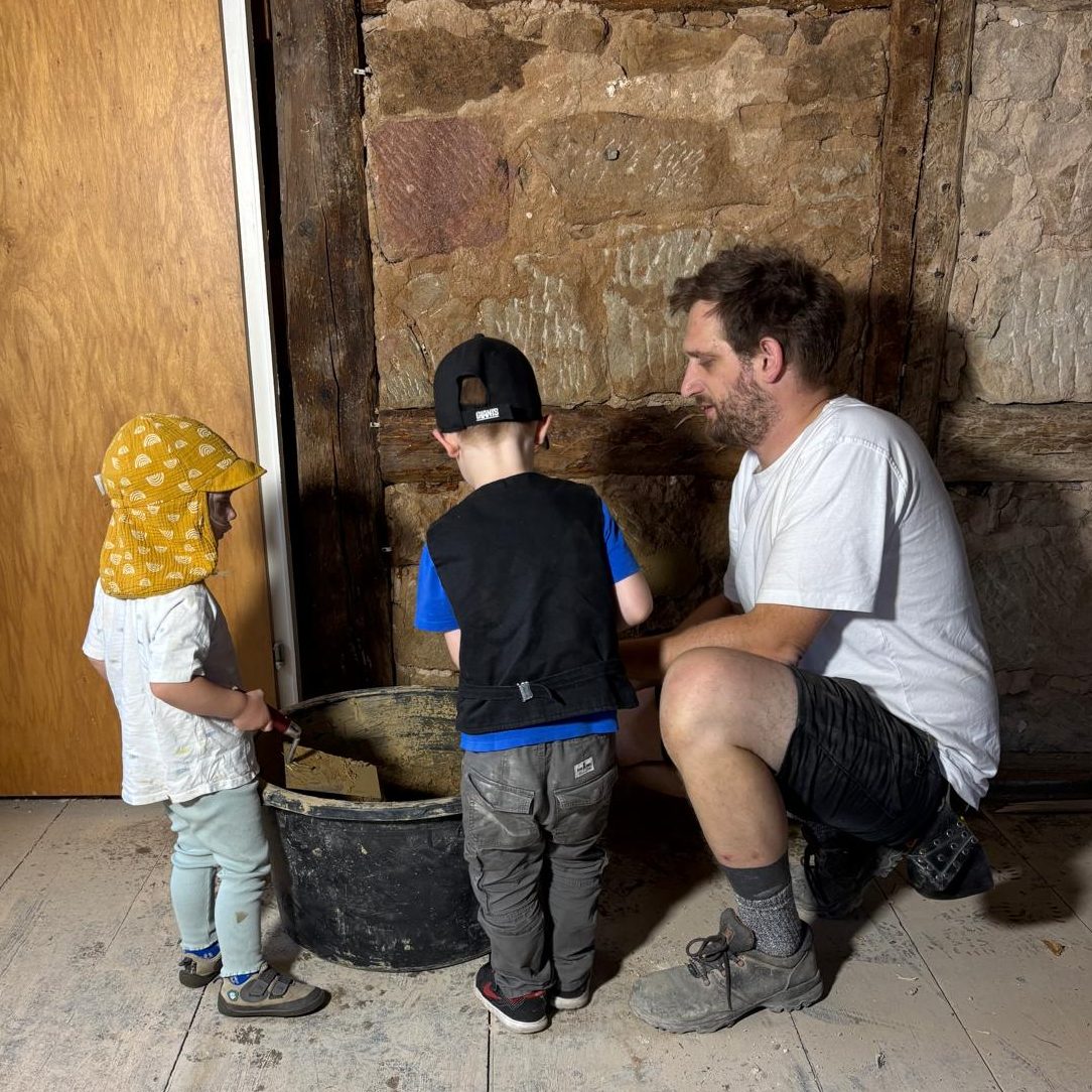 Dann habe ich Soziale Arbeit studiert und in diesem Bereich gearbeitet. Vor zwei Jahren bin ich ins Handwerk zurückgekehrt – zunächst als Zimmerer. Anfang 2025 habe ich zusätzlich die Ausbildung zur Fachkraft Lehmbau gemacht und verbinde nun beide Welten: Zimmerei und Lehmbau.